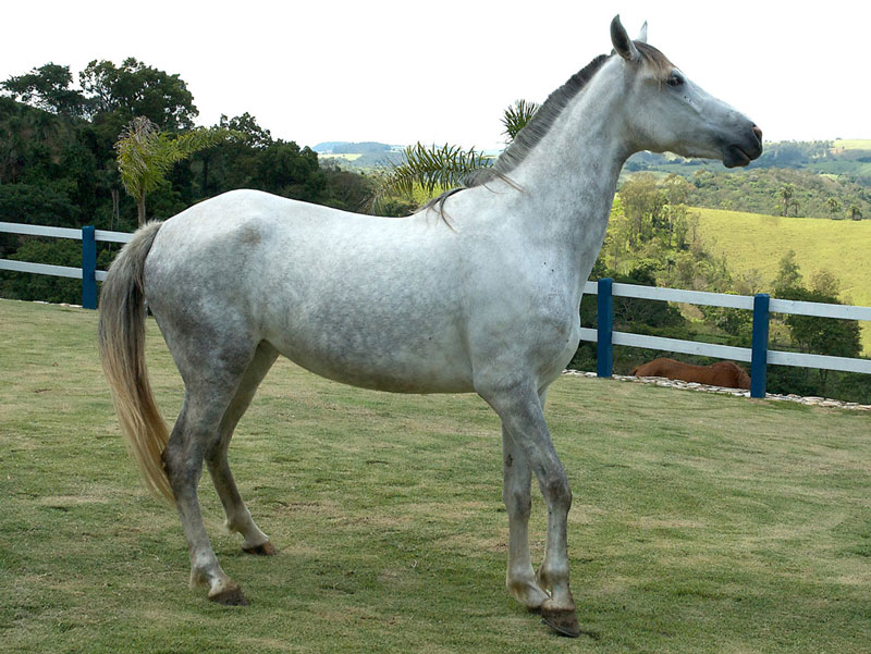 Excelente  égua, de cor tordilha, andar comodo e rasteiro,Veja seu produto “Pallas” na Seção de Potros e Potras.